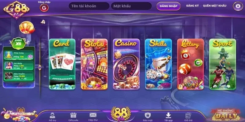 Bên cạnh đó, G88 rất đầu tư vào hệ thống vận hành cũng như thư viện game của mình. Tại G88 có rất nhiều trò chơi hot hit, hấp dẫn cho anh em thoải mái chọn lựa như: game bài tiến lên, mini-game trúng lớn, casino trực tuyến,….