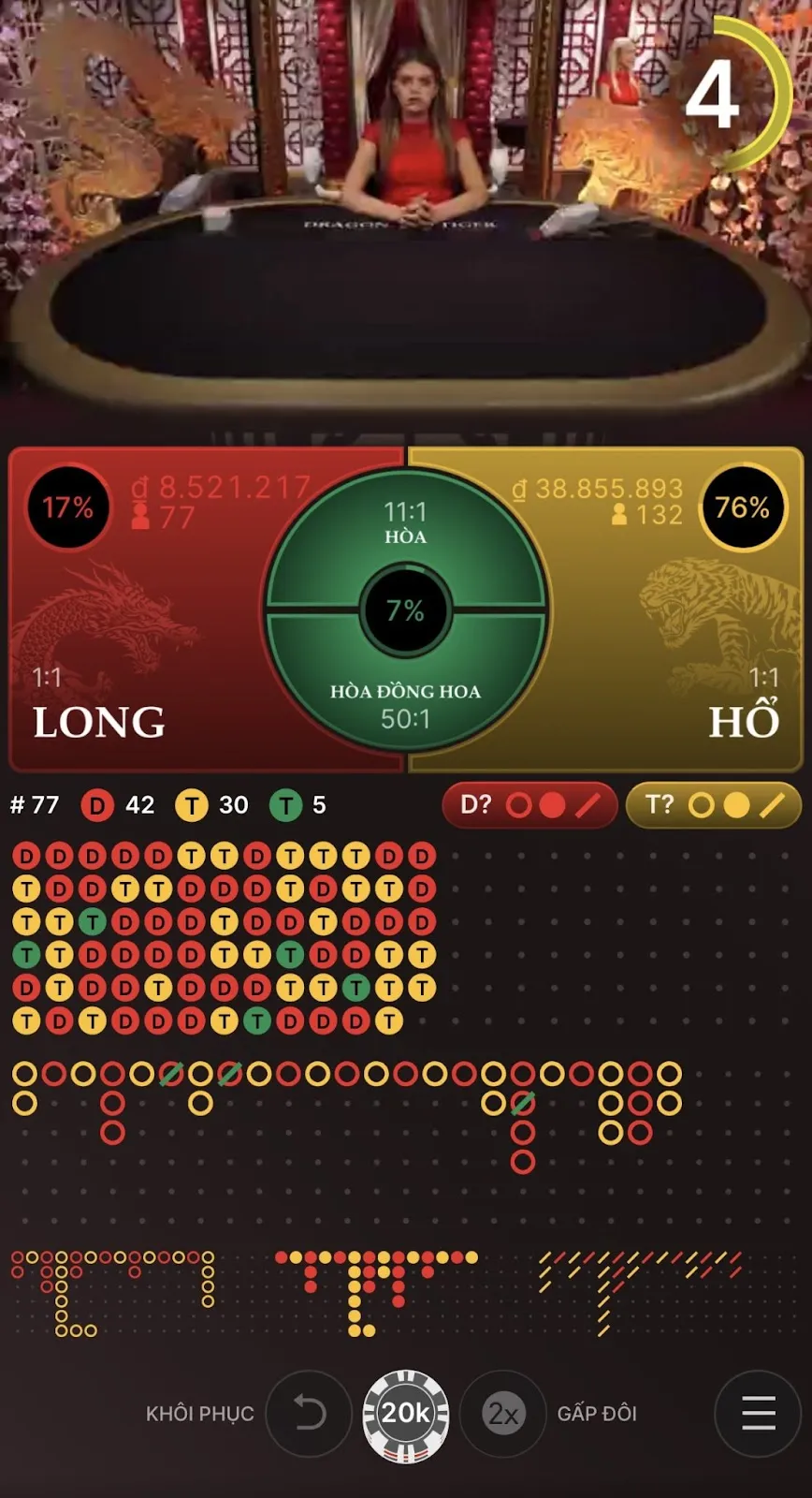 • Bước 2: Trước khi hệ thống chia bài, người chơi sẽ tiến hành đặt cược vào cửa Hổ hoặc cửa Long.
